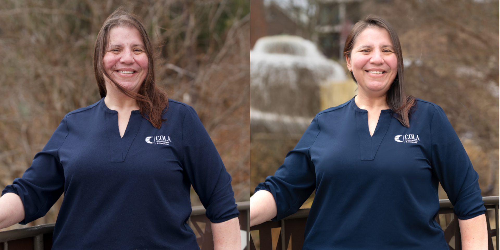 I retouched the tone of her skin, brightened her shirt, removed the windy hair from her face, and placed her in front of the same background as her coworkers.